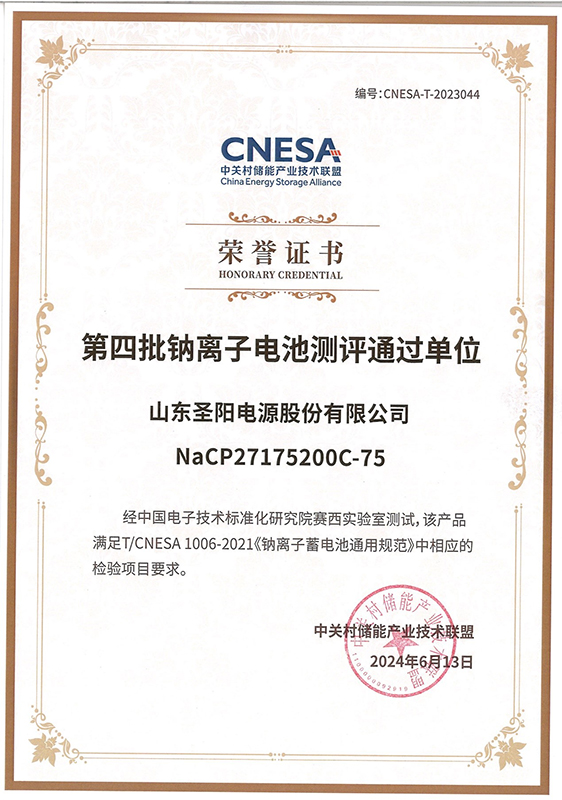 和平圣阳股份荣登“全国第四批钠离子电池测评通过单位”榜单